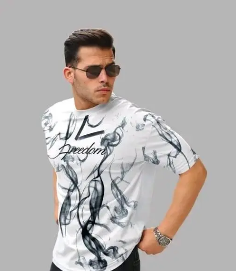Name : Men's Oversized Smoke Print T-Shirt – Trendy Graphic Tee with 'Freedom' Lettering, Stylish Streetwear Fashion, Casual Wear for Everyday Comfort, Soft Breathable Fabric, Hip-Hop Inspired Design